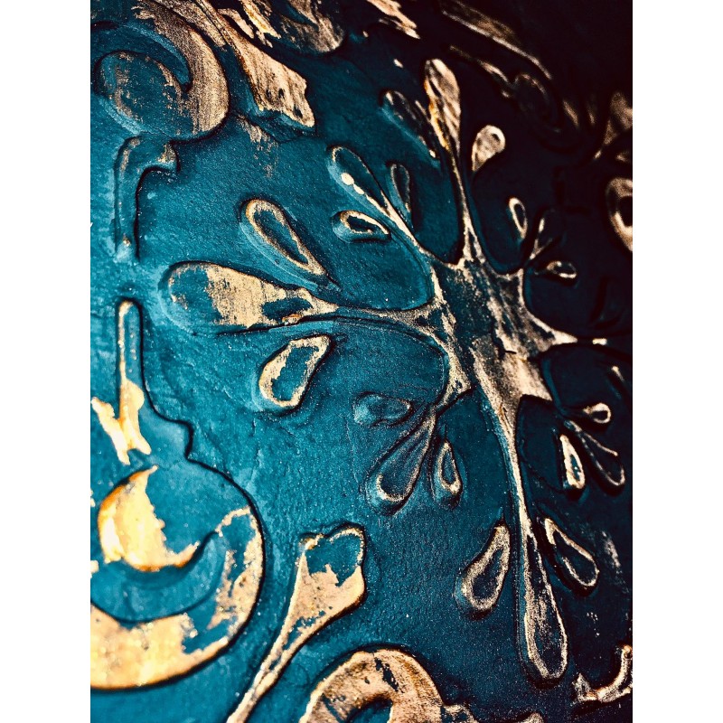 Kompozycja zawiesiny 2 płatków złotego gliteru w lakierze wodnym błyszczącym. Artystyczny lakier dekoracyjny pozwalający uzyskać oryginalne i mocno zaakcentowane artystycznie wykończenia ścian, drewna i mebli.